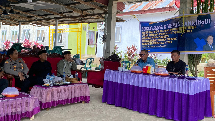 Pernyataan itu disampaikan saat menghadiri kegiatan sosialisasi dan penandatanganan kerja sama (MoU) antara masyarakat pemilik lahan dan KP-CTGU di kawasan konsesi WIUPK Prioritas, Desa Datahu, Kecamatan Anggrek, Kamis (10/4/26).