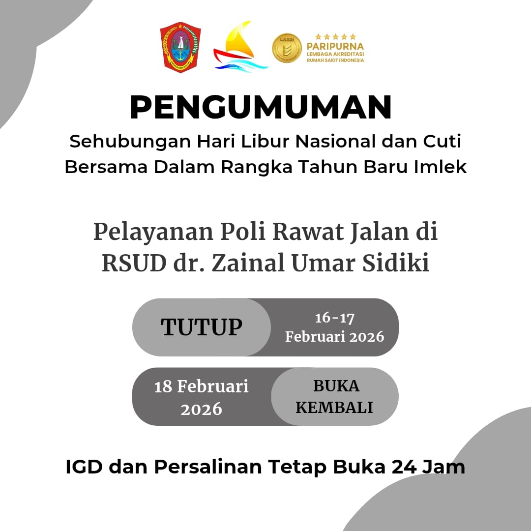 simpulindo.com, Gorut – Pelayanan kesehatan Rumah Sakit Umum Daerah (RSUD) Zainal Umar Sidiki Gorontalo Utara akan mengalami penyesuaian sementara selama libur nasional dan cuti bersama Tahun Baru Imlek 2026.