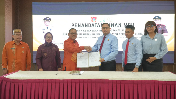 penandatanganan ini berlangsung di Ruang Tinepo, Kantor Bupati Gorontalo Utara, yang dipimpin langsung oleh Bupati Gorontalo Utara bersama Kepala Kejaksaan Negeri Gorontalo Utara.