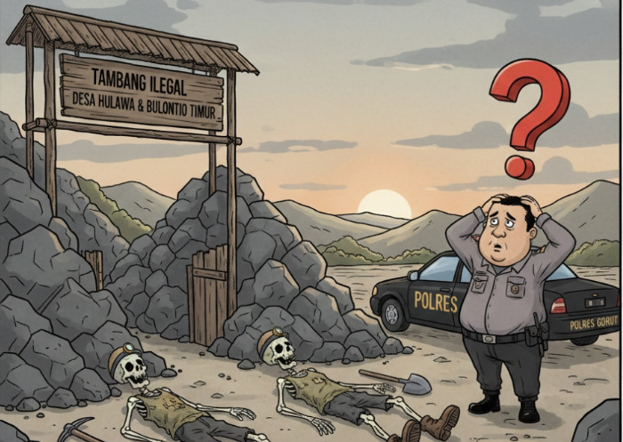 simpulindo.com, Gorut – Dua korban jiwa dalam aktivitas pertambangan di Desa Hulawa dan Desa Bulontio Timur, Kabupaten Gorontalo Utara, belum diikuti langkah penanganan hukum oleh aparat kepolisian.