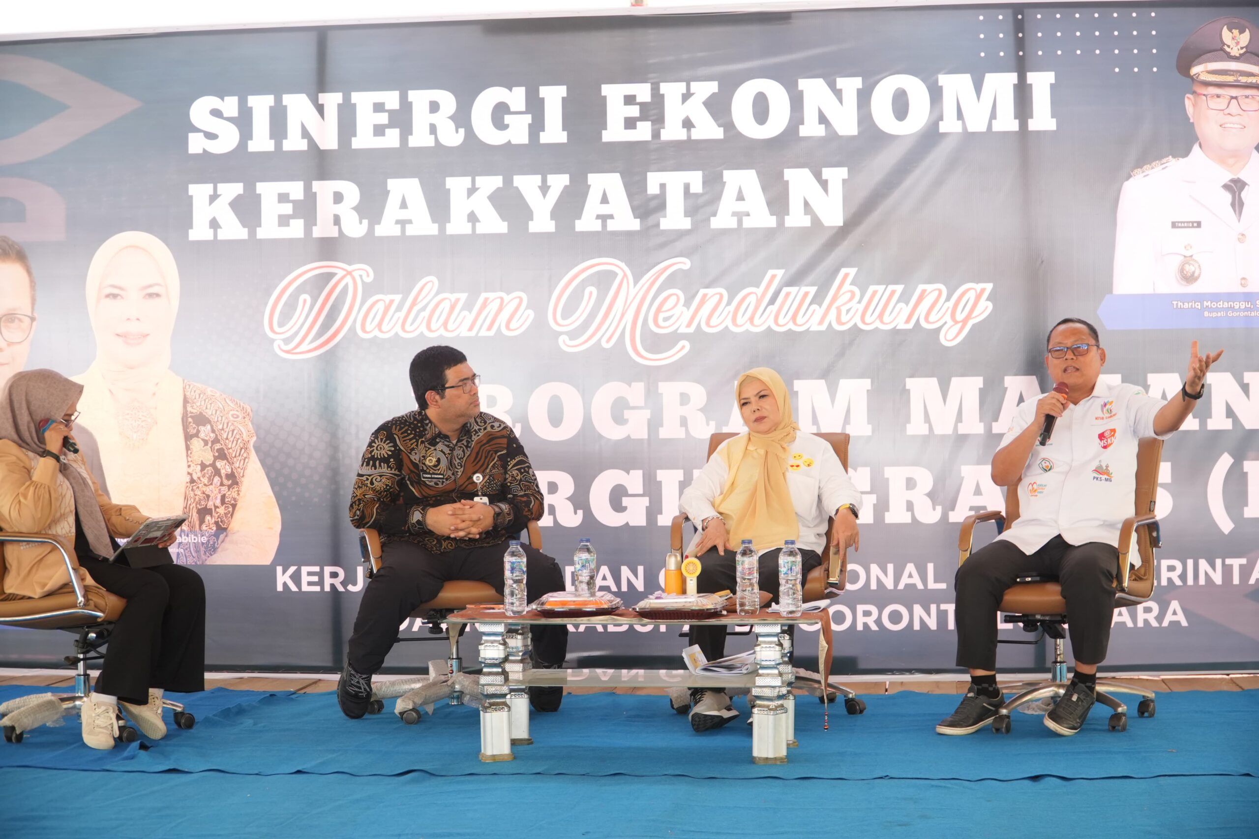 Simpulindo.com, Gorut – Pemerintah Kabupaten Gorontalo Utara menggelar dialog interaktif bertajuk Sinergi Ekonomi Kerakyatan dalam rangka mendukung Program Makan Bergizi Gratis (MBG), yang berlangsung di kawasan Taman Rakyat, Sabtu (25/04/26).