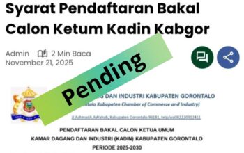 Simpulindo.com, Kabgor – Pendaftaran Bakal Calon Ketua Umum Kamar Dagang dan Industri (Kadin) Kabupaten Gorontalo untuk periode 2025–2030. Panitia Musyawarah Kabupaten (Mukab) menetapkan sejumlah persyaratan bagi para kandidat yang ingin mengikuti proses penjaringan.