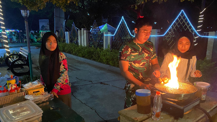 Raka Misfar, anggota TNI aktif tersebut, memilih memanfaatkan waktu luangnya dengan berjualan bakso bakar di kawasan trotoar sekitar Kantor Bupati Gorontalo Utara.